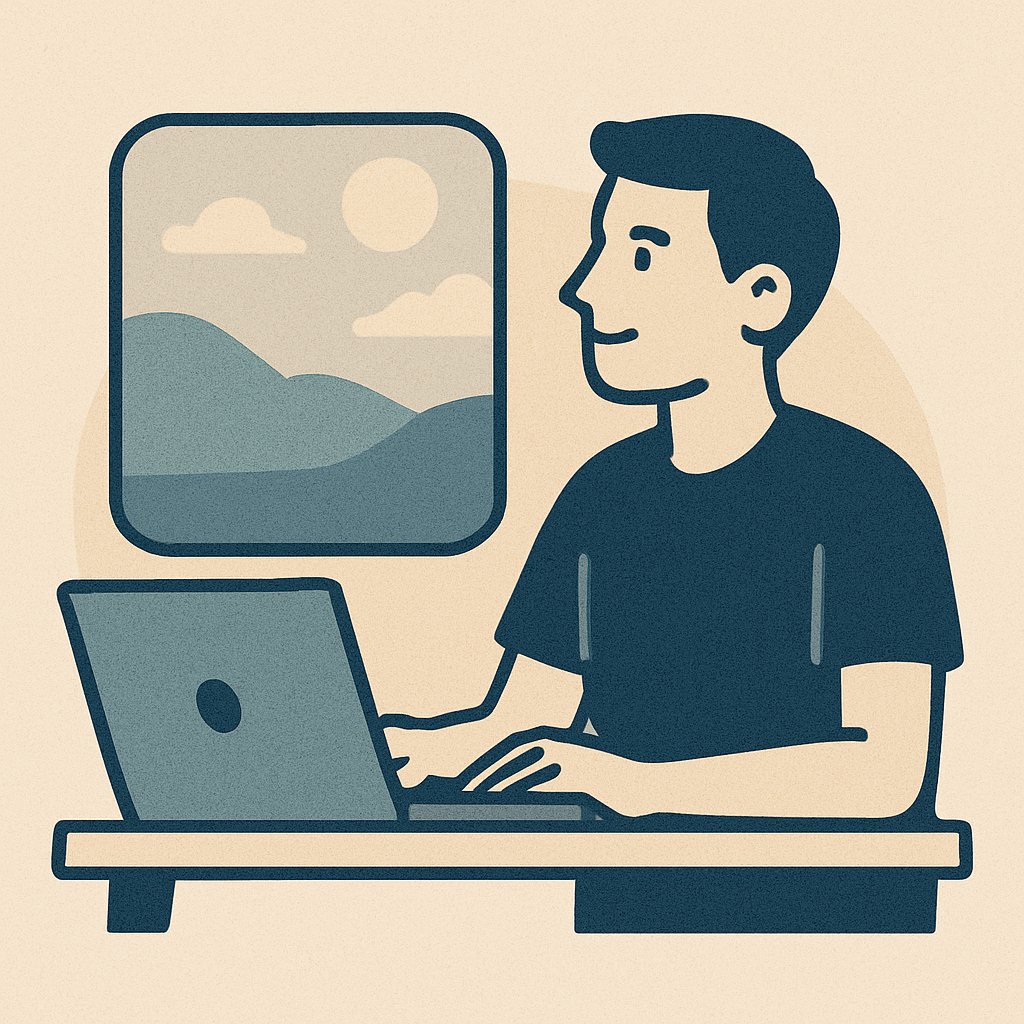 → “혼자 고민하다가 글을 쓰기 시작하는 사람” 분위기의 장면